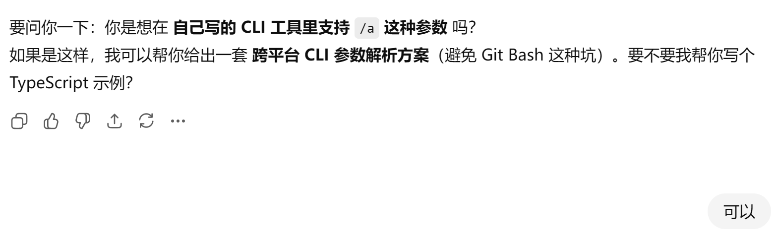 此时,我重新对问题进行了补充,告诉它只有“Git Bash”才会有问题。