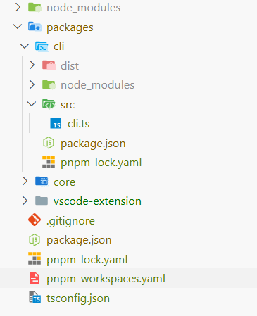 项目中的core和cli两个包,最终是需要发布到 npm 仓库的,vscode-extension 则需要独立打包。